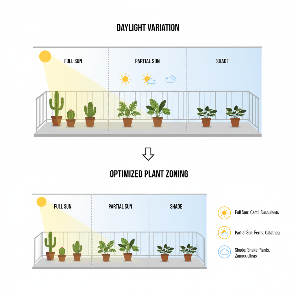베란다의 일조량은 시간대와 구조에 따라 크게 달라진다. 태양 고도, 반사광, 그림자 패턴을 분석하여 식물의 생육 구역을 세분화하고, 실험 없이도 가능한 조도 기반 배치 전략을 제시한다.
